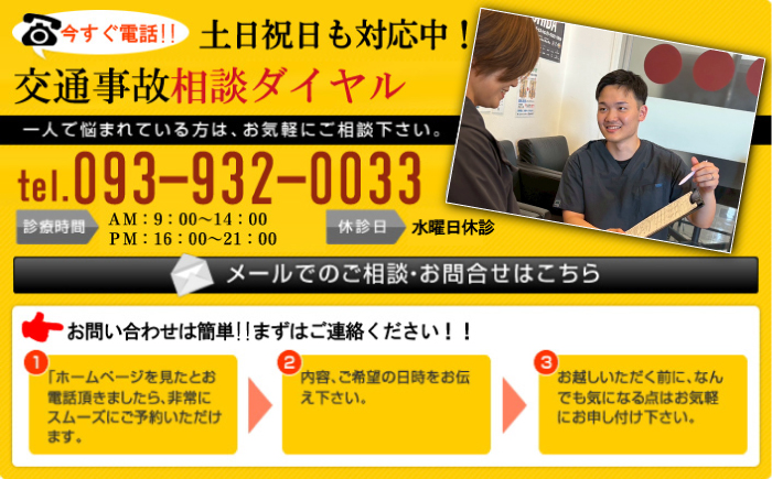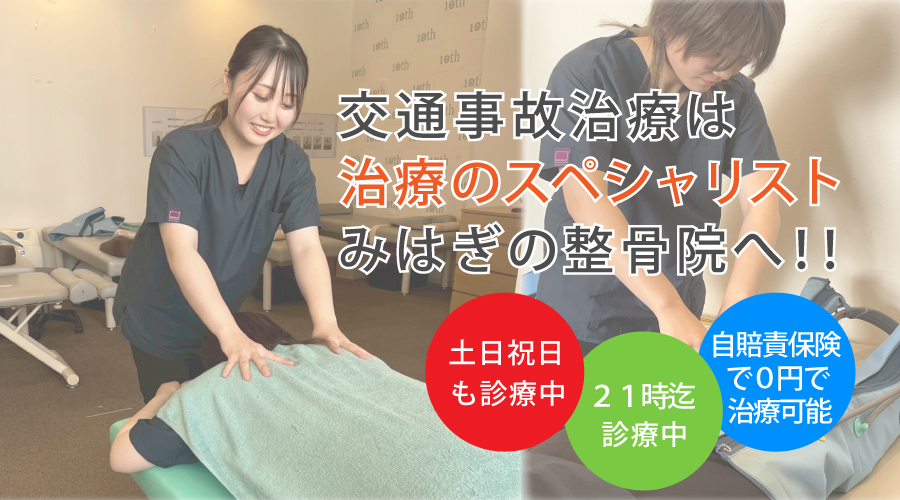 当院の交通事故治療は21時まで対応&土日も診療中